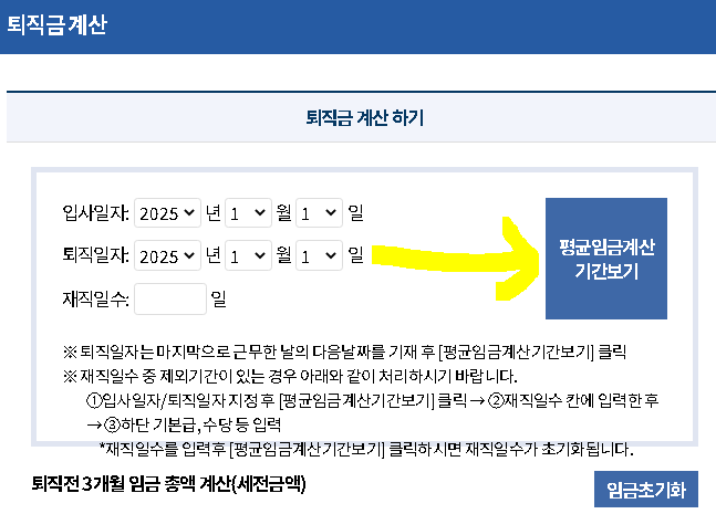 퇴직금 계산기(고용노동부), 임금 계산기로 퇴직금 계산