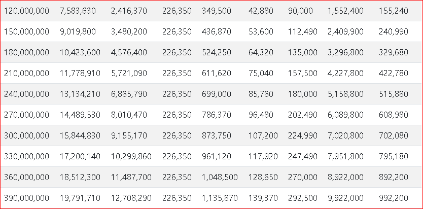 2022년 연봉 실수령액 표 -연봉 1000만 원~ 3억대까지
