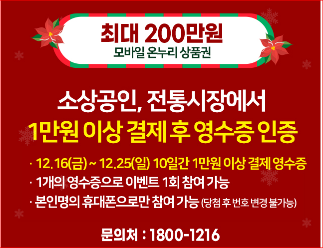 ※ 단 2022년 12월 16일(금)~ 12월 25일(일) 동안 소비한 영수증만 응모가 가능하니 참고하시기 바랍니다.