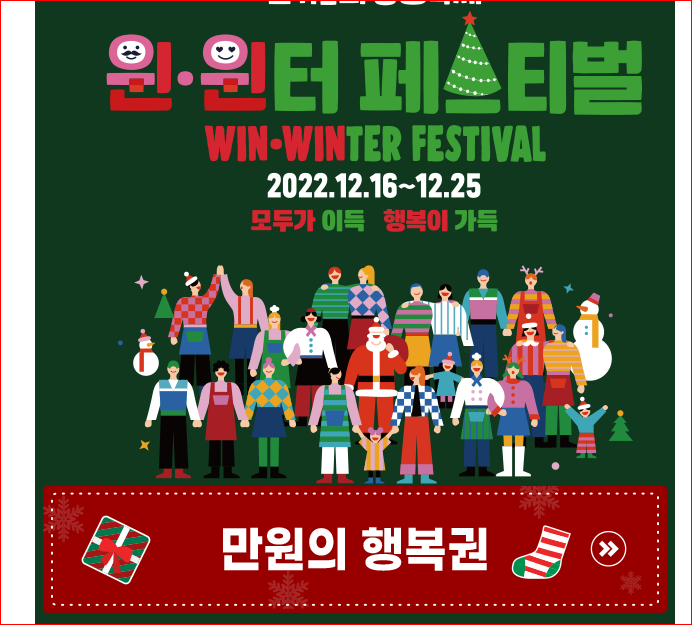 윈 윈터 페스티벌 전체 행사 일정은 2022년 12월 16일 (금)~ 12월 25일(일)까지 딱 10일간 진행됩니다.